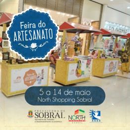 Terá início, nesta sexta-feira (05/05), a Feira de Artesanato Sobralense no North Shopping de Sobral. Realizada na primeira semana do mês, a Feira conta com exposição e comercialização de artigos de crochê, pinturas em tecidos, decoração, artesanato em madeira, composição em retalhos (patchwork), arranjos, bordados, biojóias, itens de couro, telas, arranjos, entre outros, com a participação de 14 expositores da cidade.