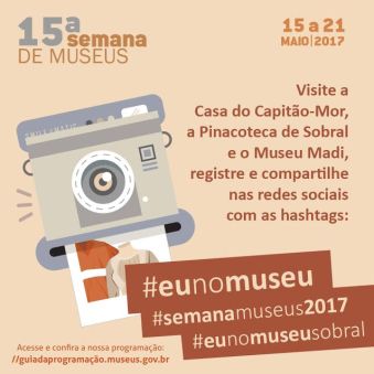 A partir da próxima segunda-feira (15/05), a Casa do Capitão Mor, a Pinacoteca de Sobral, o Museu Dom José e o Museu Madi integrarão a ‘15ª Semana Nacional dos Museus’. Uma realização do Instituto Brasileiro de Museus (IBRAM), por meio da Secretaria da Cultura, Juventude, Esporte e Lazer (Secjel), a inciativa visa celebrar o dia internacional dos museus, comemorado no dia 18 de maio.