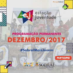 A Prefeitura de Sobral, por meio da Secretaria da Cultura, Juventude, Esporte e Lazer (Secjel) e da Escola de Cultura, Comunicação, Ofícios e Artes (Ecoa), lança a programação continua do mês de dezembro com diversas atividades culturais, formativas, de esporte, lazer e participação da Juventude.
