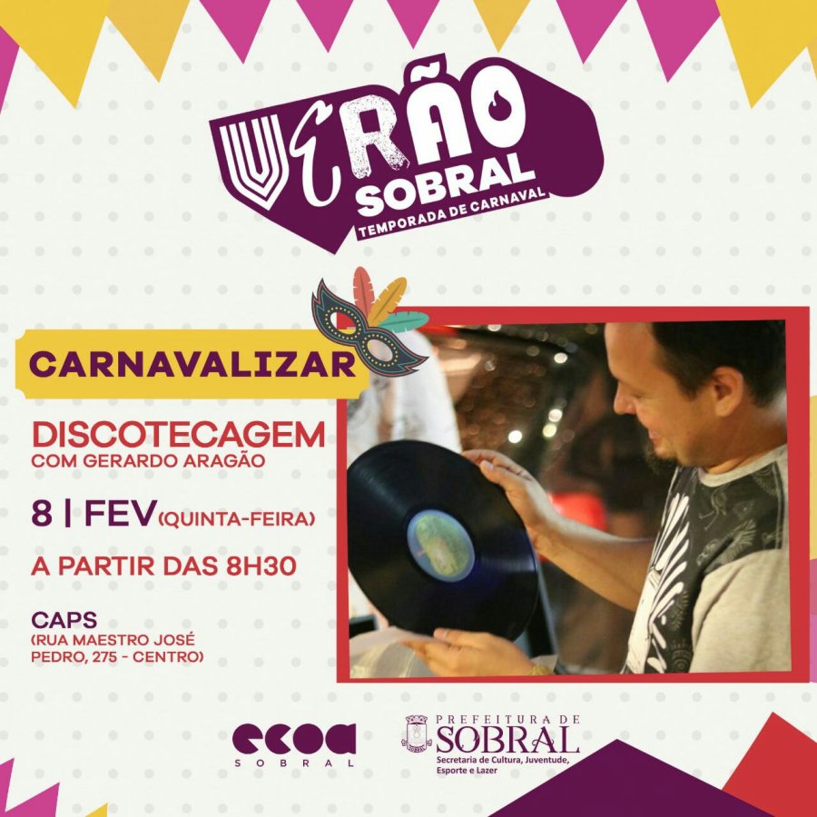 A Prefeitura de Sobral, por meio da Secretaria da Cultura, Juventude, Esporte e Lazer (Secjel) e da Escola de Cultura, Comunicação, Ofícios e Artes (Ecoa), lança a programação contínua do mês de fevereiro com diversas atividades culturais, formativas, de esporte, lazer e participação da Juventude.