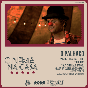 O projeto Cinema na Casa segue sua programação nessa quarta-feira (21/02), exibindo o filme “O Palhaço”, estrelado e dirigido por Selton Mello, às 19h, com acesso gratuito.
