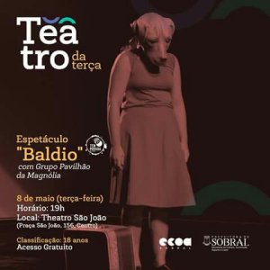 O espetáculo “Baldio”, uma metáfora do abandono social a partir da figura de um cachorro vira-lata, chega ao Theatro São João de Sobral, nesta terça-feira (8), compondo a programação de maio do Teatro da Terça. A apresentação acontecerá às 19h, com classificação indicativa para maiores de 18 anos.
