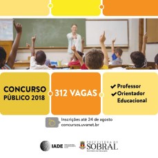 Seguem abertas as inscrições para o concurso público com 312 vagas e cadastro de reserva para os cargos de Professor e Orientador Educacional. Os interessados devem realizar as inscrições, por meio de formulário eletrônico, no site: