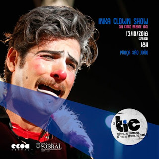 A Companhia Circo Rebote (Distrito Federal) se apresenta, neste sábado (13/10), na Praça São João, a partir das 18 horas. Com o espetáculo “Inka Clown Show”, o grupo reúne arte circense e brincadeiras. O evento integra a programação da 8º edição do Festival de Teatro Infantil do Ceará (TIC). A classificação é livre e o acesso gratuito.