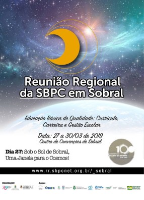 A Reunião Regional da Sociedade Brasileira para o Progresso da Ciência (SBPC) em Sobral será realizada de 27 a 30 de março, no Centro de Convenções. Pesquisadores de todo o Brasil irão debater sobre “Educação Básica de Qualidade: currículo, carreira e gestão escolar”. O evento faz parte das comemorações pelo centenário do eclipse com o qual foi possível comprovar a Teoria da Relatividade de Albert Einstein em 1919.