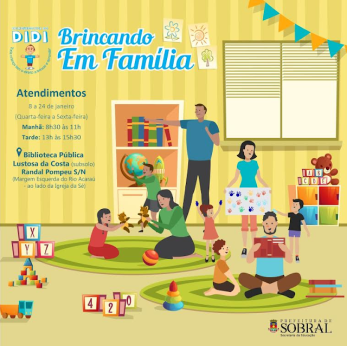 A Brinquedoteca do Didi promoverá, às quartas, quintas e sextas-feiras, de 08 a 24 janeiro, o “Brincando em Família” oferecendo atividades culturais e recreativas às famílias que visitam o equipamento, nos turnos da manhã e tarde. O objetivo é promover o fortalecimento dos vínculos familiares e a socialização, no espaço de referência do brincar para compartilhar suas vivências, reconhecendo em si mesmas seus traços e capacidades de interações lúdicas.