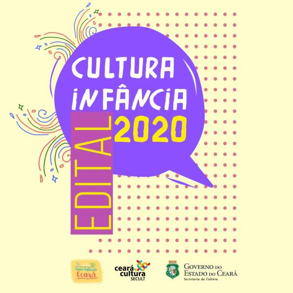 A Secretaria da Cultura do Estado do Ceará torna público o edital que regulamenta o processo de inscrição e seleção pública do EDITAL DE APOIO A PROJETOS DE CULTURA INFÂNCIA. Confira Edital que ficará disponível no site oficial da SECULT ou pela página www.editais.cultura.ce.gov.br) para conhecimento das instituições interessadas de toda sociedade a partir desta quarta-feira, 04 de março até 04 de abril de 2020. Imediatamente após o período de divulgação,serão abertas as inscrições, no período de 05 a 27 de abril de 2020. As inscrições serão gratuitas e exclusivamente online pelo site http://www.editais.cultura.ce.gov.br.