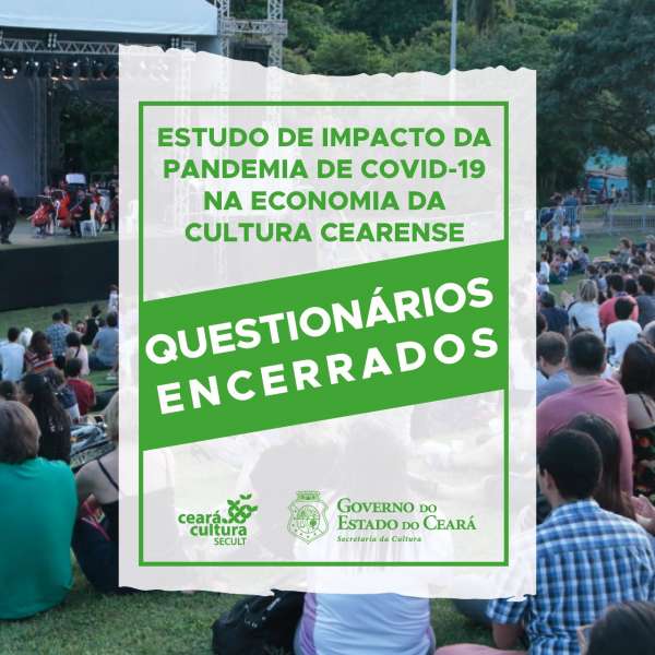 A Secretaria da Cultura do Estado do Ceará encerrou neste domingo 26/4, a realização da primeira e segunda fases da estudo de impacto da pandemia de Covid-19 na economia da cultura cearense. O estudo tem por objetivo buscar dimensionar as consequências das medidas adotadas para enfrentamento do Coronavírus no campo cultural e propor medidas para o setor com eficácia e precisão.