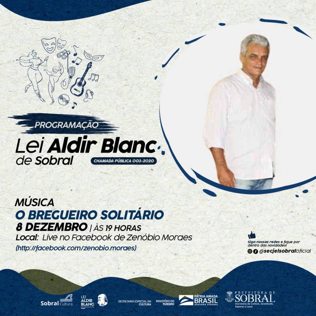 Na noite desta terça-feira (8) às 19h, o cantor e compositor Zenóbio Moraes, realiza live em seu canal facebook o seu mais novo projeto “O Bregueiro Solitário.