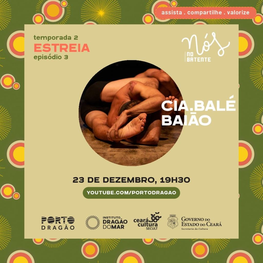 A premiada Cia de Dança Balé Baião, de Itapipoca, interior do Ceará, compartilha sua história e trajetória no terceiro episódio da nova temporada de “Nós no Batente” que estreia nesta quarta-feira (23/12) às 19h30 no Youtube do Porto Dragão.