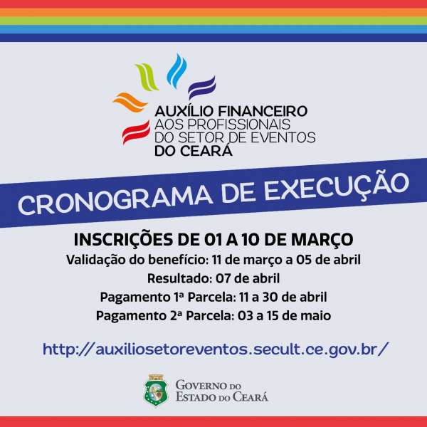 Site para cadastro: auxiliosetoreventos.secult.ce.gov.br (disponível somente na segunda-feira, 1º de março)