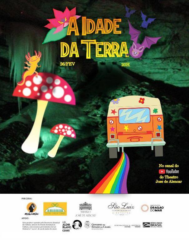 Um compêndio da história do planeta Terra, desde a lava que se dissolve nas águas do mar, aos rios de leite da cobra-canoa dos índios Dessana ou à grande árvore Samaúma, sagrada para dezenas de índios da região amazônica. O espetáculo narra a história de dois homens e um menino, artistas mambembeiros, em busca do macaco Ligeirinho, que faz parte dos shows e das peripécias do grupo, que um dia se perdeu em uma caverna misteriosa. Teatro, música, embolada, aventura e brincadeiras embalam a narrativa.O projeto foi fomentado com recursos da lei 14.017/2020 – Lei Aldir Blanc, por meio da Secretaria de Cultura do Ceará.