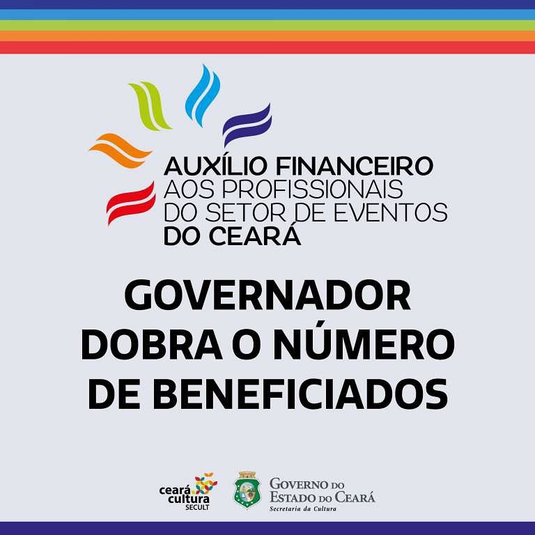 Governo do Ceará amplia para R$19,8 milhões o auxílio financeiro aos profissionais do setor de eventos, contemplando todos os aprovados. A decisão do governador Camilo Santana, anunciada em live nesta terça-feira, 13/4, irá beneficiar todos os 19.830 profissionais do setor de eventos inscritos, quase duplicando os recursos previstos anteriormente. “Na negociação com o segmento havia uma previsão de beneficiar 10 mil trabalhadores. Decidi e estou autorizando o pagamento de todos os inscritos. Todos os 19.830 receberão a parcela de RS 1 mil reais”, destacou o Governador. O pagamento iniciará no dia 20 de abril