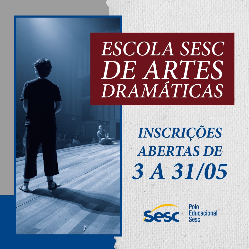 Estão abertas até o dia 31 de maio, as inscrições para a Escola Sesc de Artes Dramáticas, uma das iniciativas formativas do Polo Educacional Sesc. O projeto prevê a implantação de uma escola gratuita dedicada à formação de atores/atrizes para atuação profissional nas artes cênicas, com ênfase no teatro.