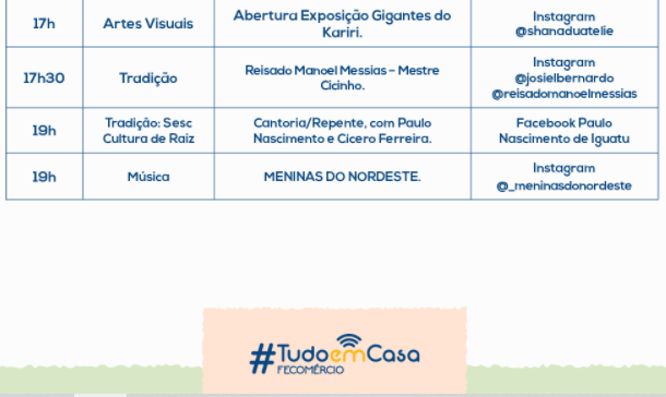 15 a 20 de junho, sempre às 19h – entrevistas com os artistas participantes via @dona.zefinha no Instagram.