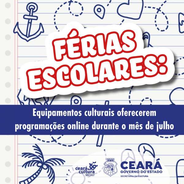 As férias escolares vão chegando e os equipamentos da Secretaria da Cultura do Estado do Ceará (Secult Ceará), geridos em parceria com o Instituto Dragão do Mar (IDM), preparam uma programação especial para toda a família. O Theatro José de Alencar, o Cineteatro São Luiz, o Centro Cultural Bom Jardim e o Centro Dragão do Mar, trazem uma programação online em sua grande maioria, incluindo diversas linguagens artísticas e pensando especialmente no público infantojuvenil.