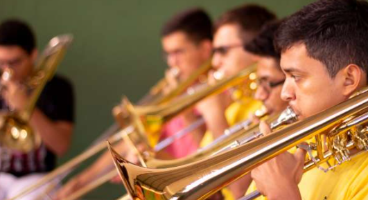 - Prática de instrumentos de sopro: Metais (Trompete, trombone, bombardino, trompa e tuba) com RUBINHO ANTUNES (SP)