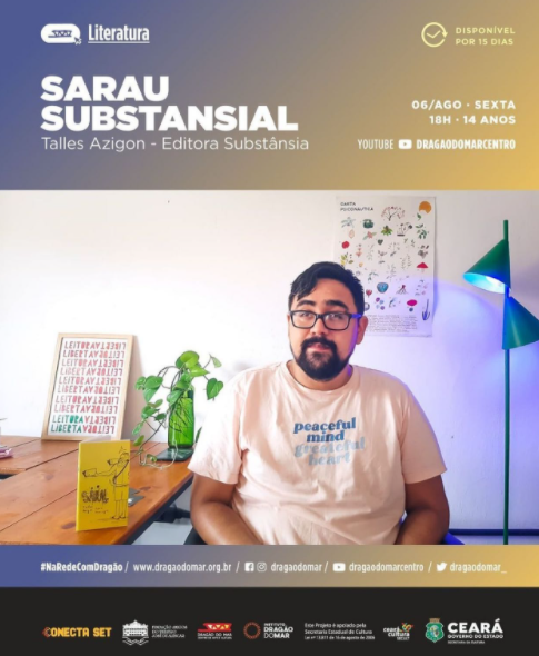 O sarau será apresentado pelo poeta, editor e contador de histórias Talles Azigon (@tallesazigon – Editora Substânsia). Nesta edição, participam os escritores e poetas cearenses Madjer Pontes, Edilson Pereira, Patrícia Cacau, Marcondes Jamacaru e João Paulo Lima para lerem e recitarem algumas de suas próprias produções.
