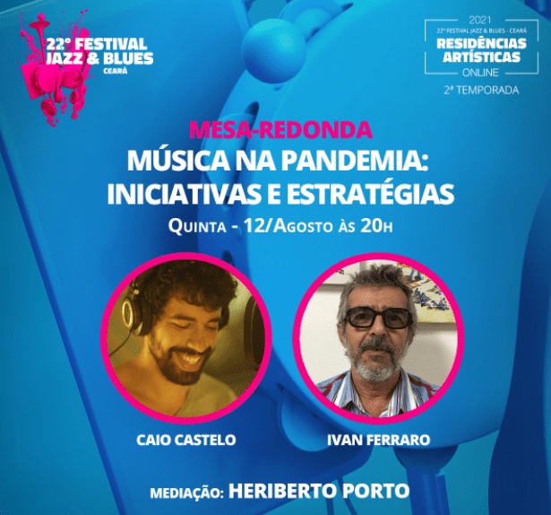 “O mercado e o circuito da música” é o tema que abre, nesta terça-feira, às 20h, as mesas-redondas das Residências Artísticas do Festival Jazz & Blues 2021 – 2ª Temporada. Serão quatro dias de programação online, de 10 a 13 de agosto, com nomes de referência na área da música e mercado. Abertas ao público, as mesas-redondas serão transmitidas ao vivo no canal do festival no YouTube (jazzebluesce), com intérprete de libras.