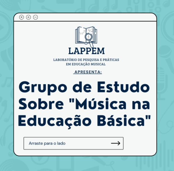 O Laboratório de Pesquisa e Práticas em Educação Musical (LAPPEM) convida a todo(a)s o(a)s interessado(a)s a se inscreverem para participar do grupo de estudo sobre Música na Educação Básica.